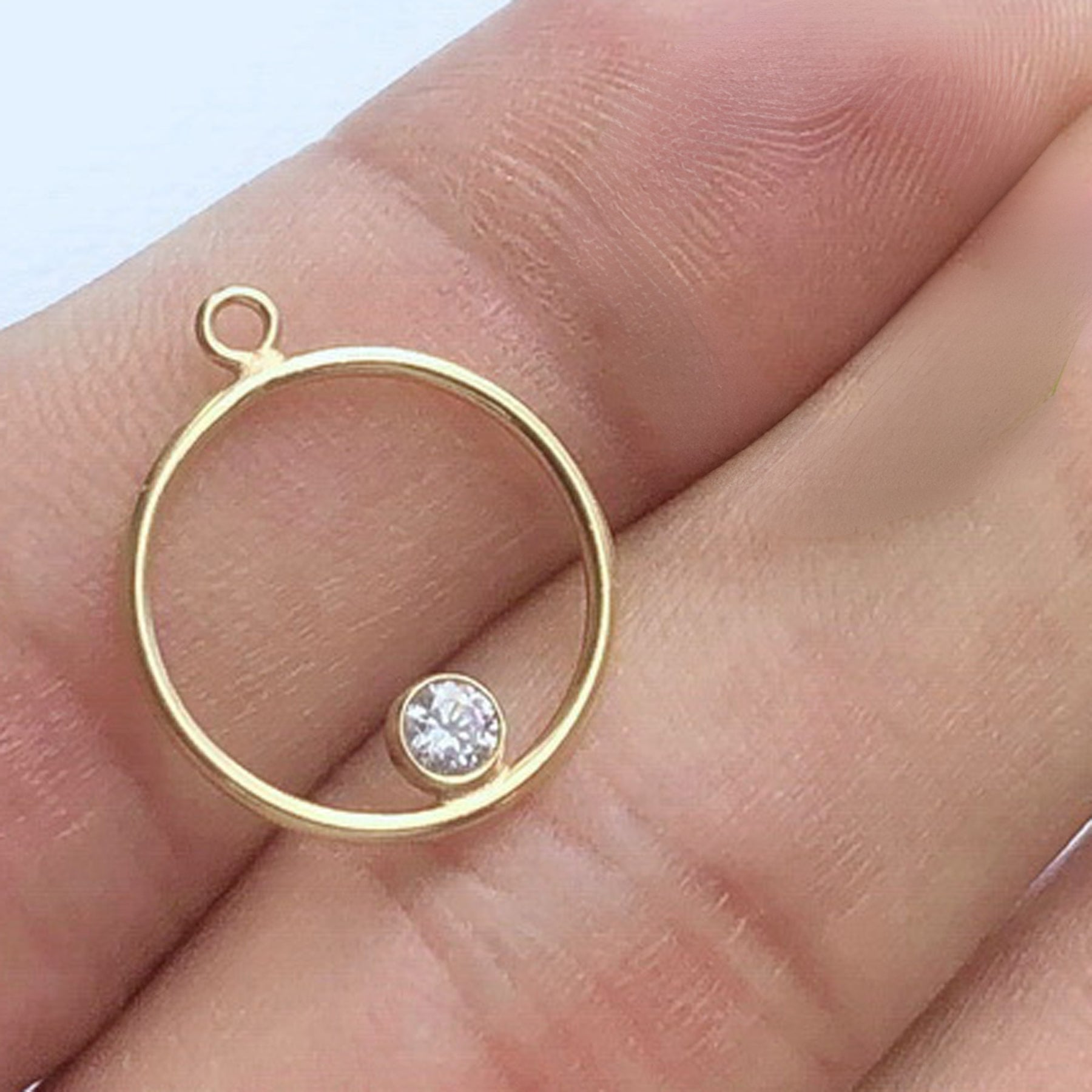 Description: Jewelry Findings - 14K Gold-Filled 15mm Round Jump Ring with Zirconia and Bail