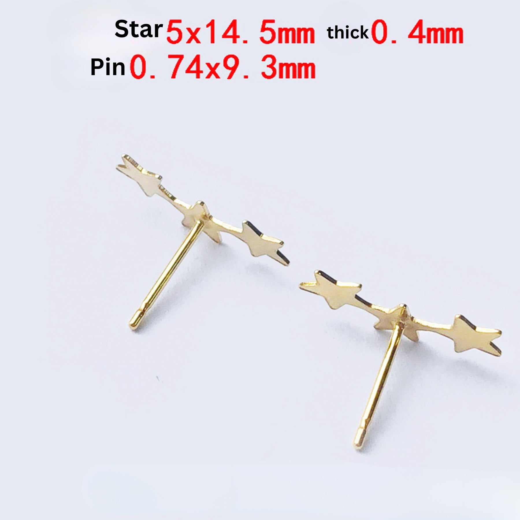 Size: Post 0.74mmx 9.3mm. Star Charm: 14.5mm x 5mm x 0.4mm