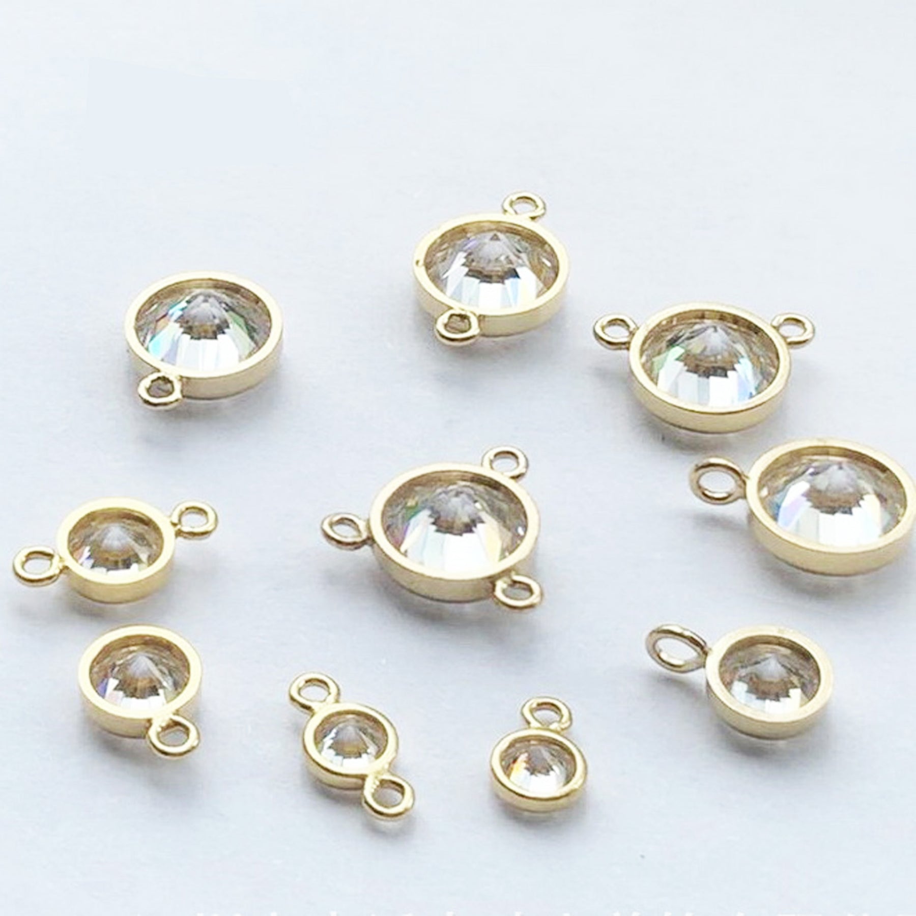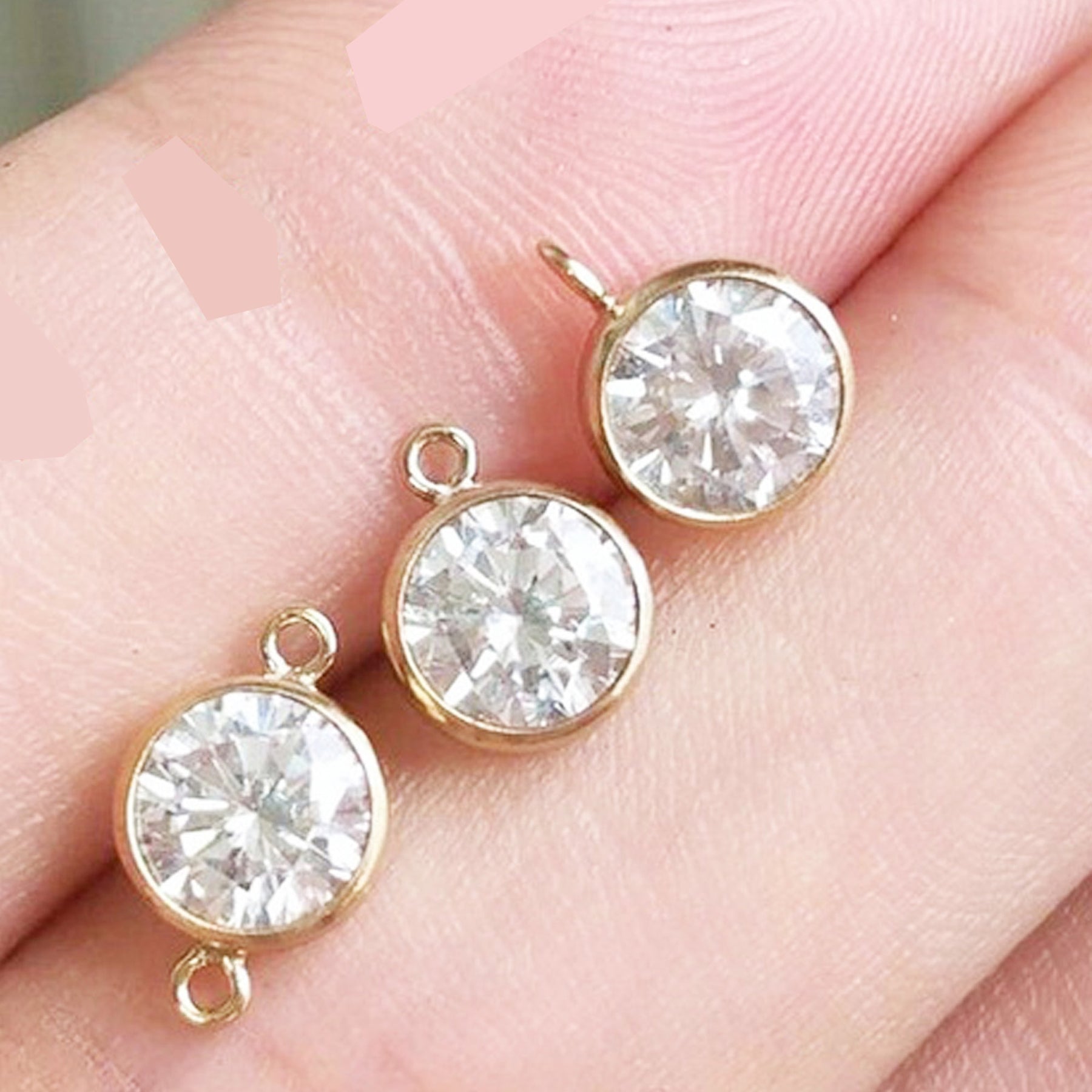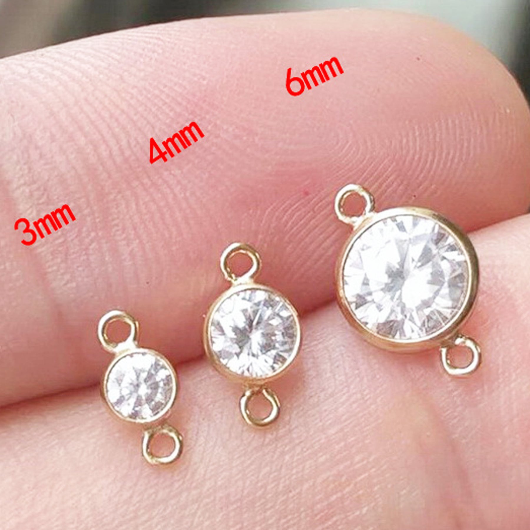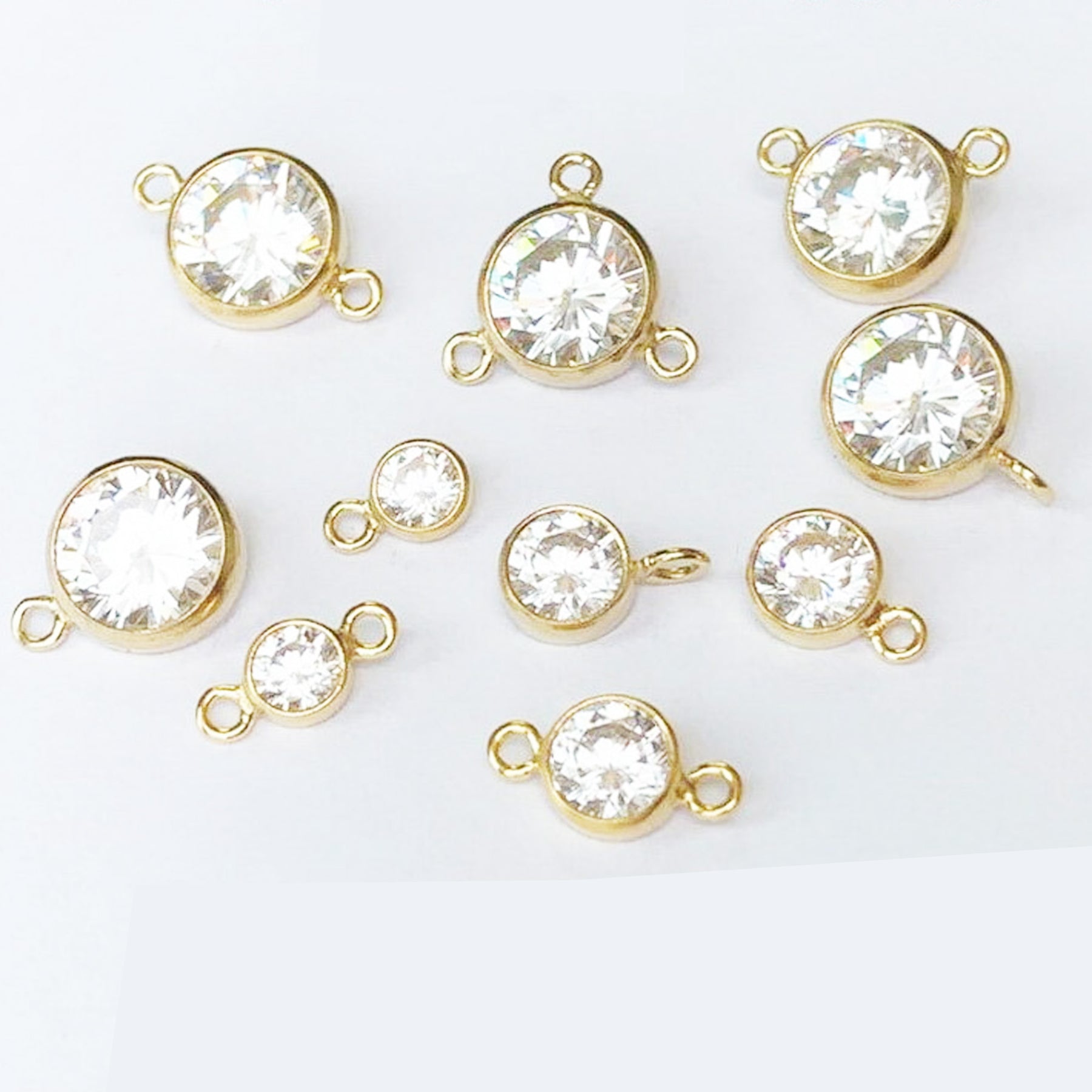 Description: Jewelry Findings - 14K Gold Filled 3-6mm White Zircon 1-3 Loop Connector Charm