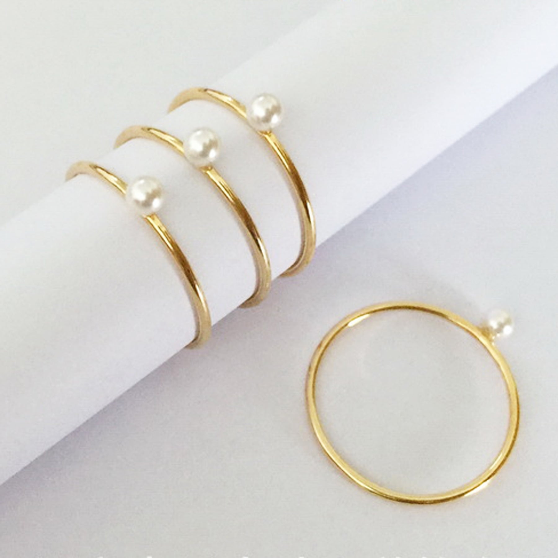 Description: Jewelry Findings - 14K Gold Filled 3mm Shell Pearl Ring Band DIY Accessory