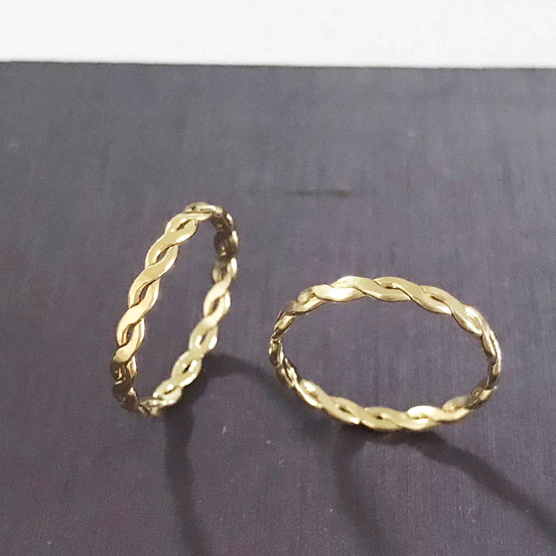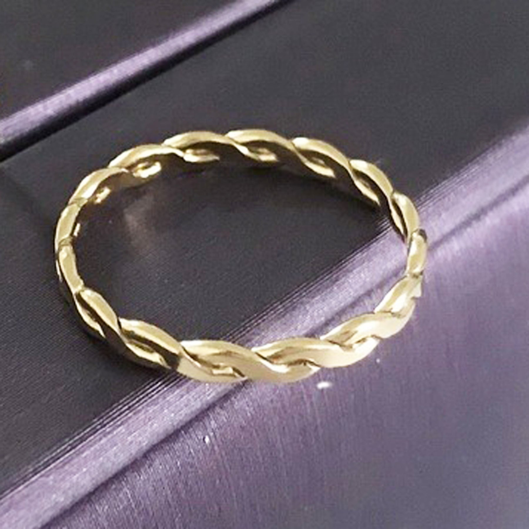 Description: Jewelry Findings - 14K Gold Filled Hammered Rope Ring, Interwoven Wide Twist Band Circle Ring