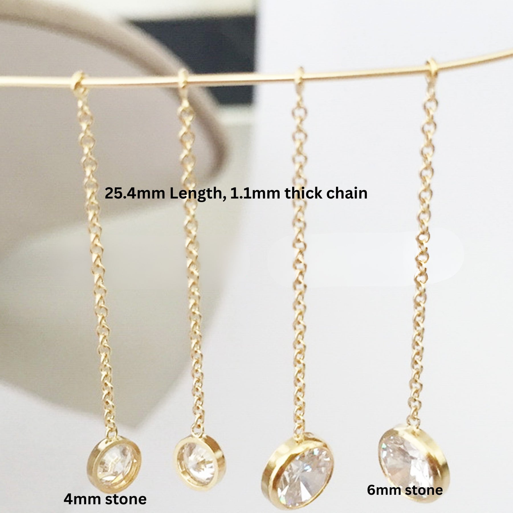 With 6mm Zircon: Chain thickness1.1mm,Chain length1 inch (2.54cm),Jump ring: 0.5×2mm