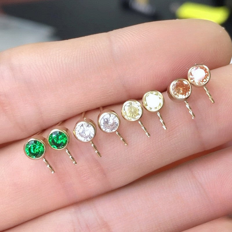 Size: Post 0.75mm× 9.5mm ,Twist Pin: 0.73mm × 3.5mm , Zircon 4mm Round Cut